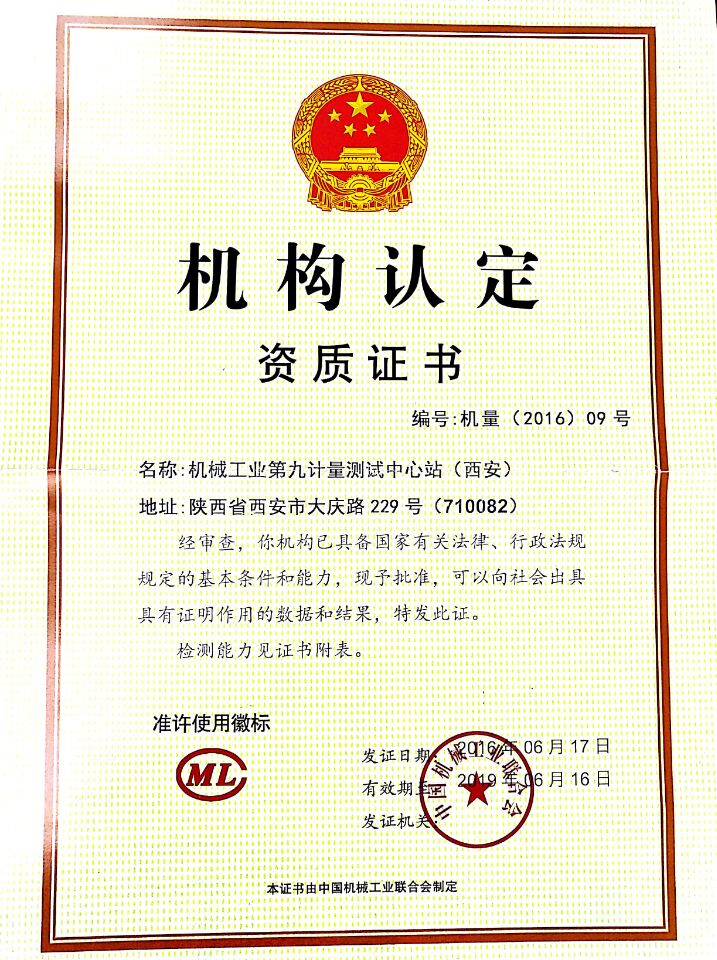 機(jī)械工業(yè)第九計(jì)量測(cè)試中心站